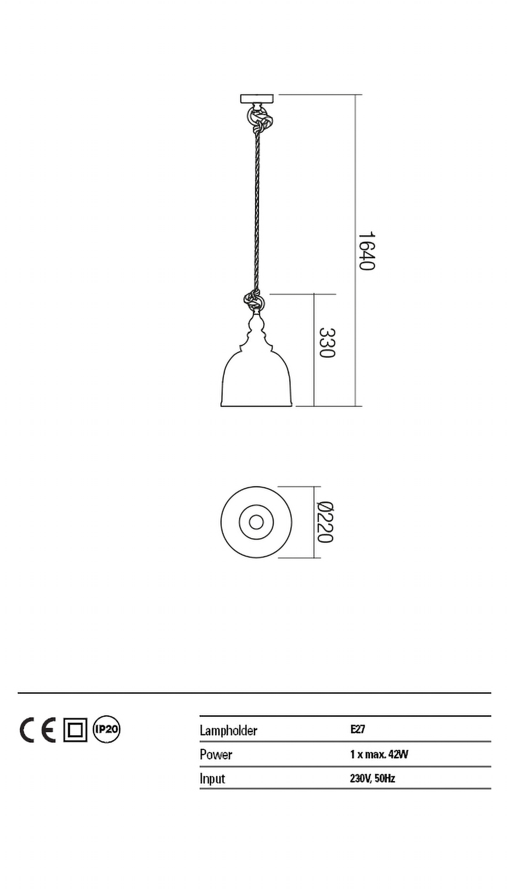 | Závěsné svítidlo KASHI ø 25 cm, v. 158 cm |