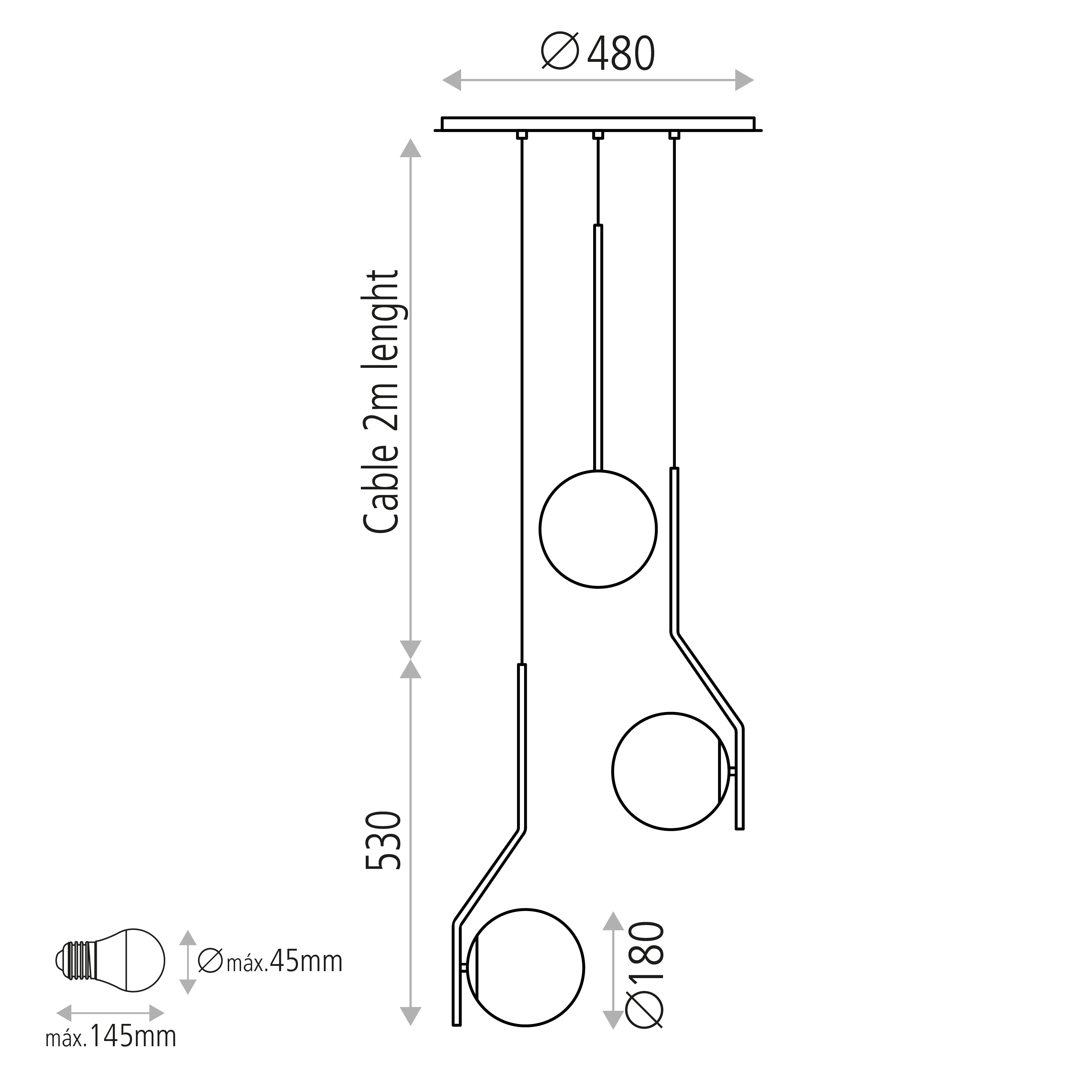 - 3 opálově bílé skleněné difuzory ve tvaru koule