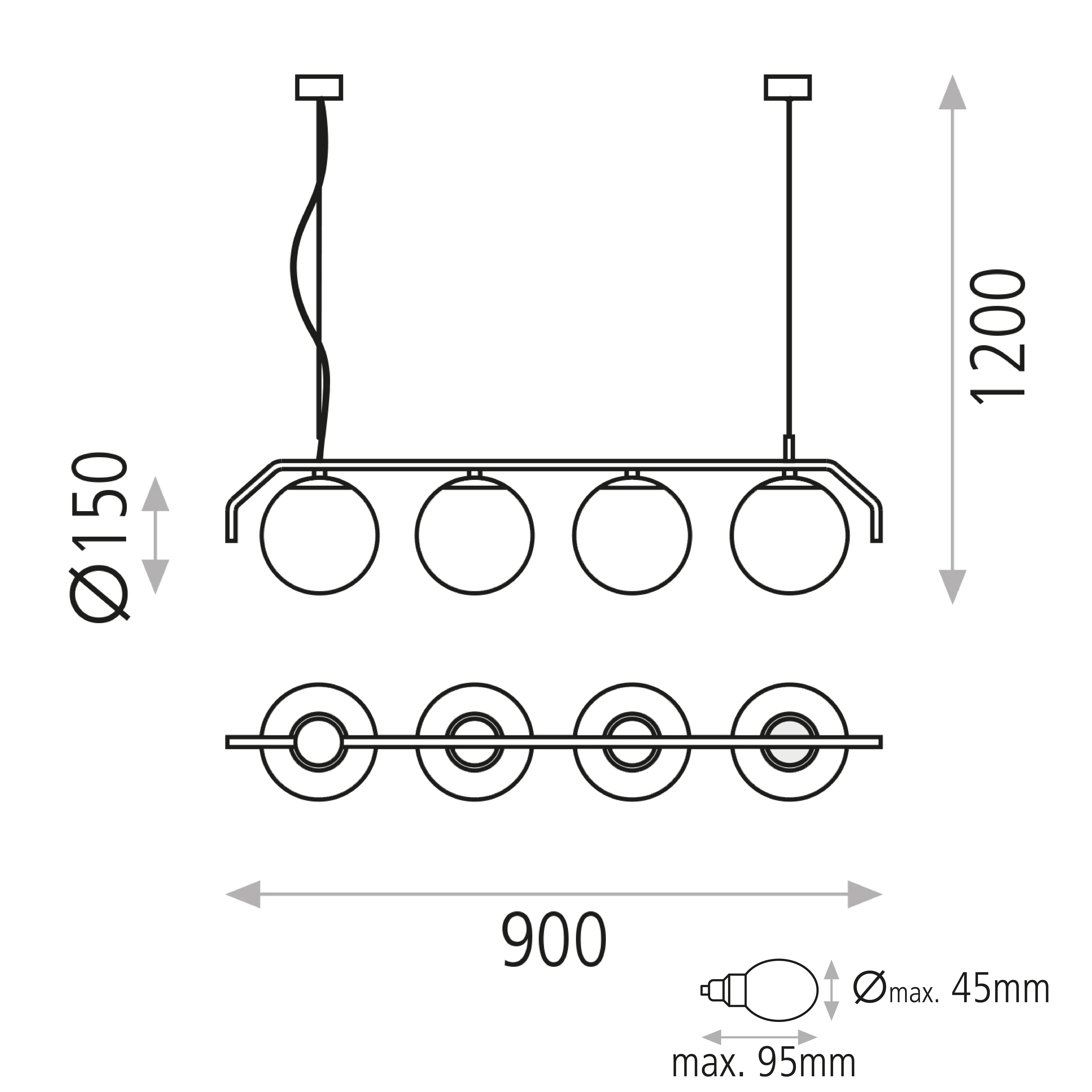 - 4 opálově bílé skleněné difuzory ve tvaru koule
