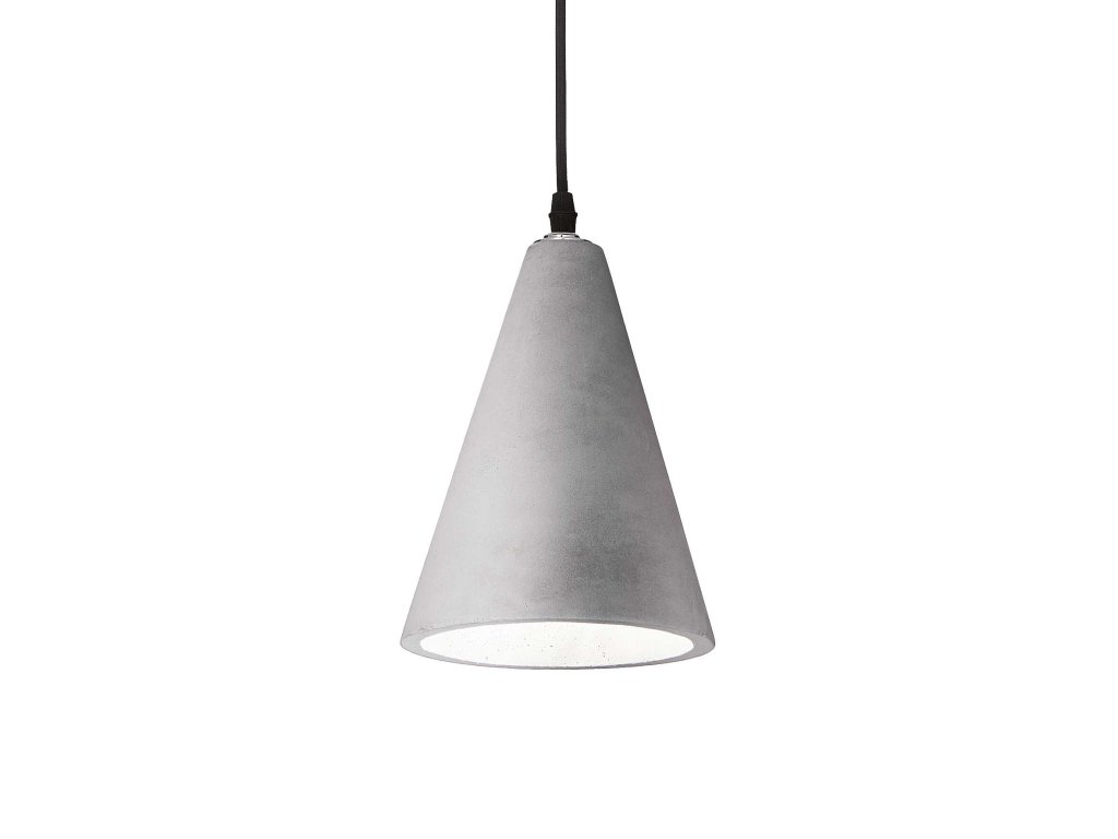Závěsné svítidlo Oil-2 v kuželovitém šedém provedení o průměru 15 cm z kolekce designového interiérového osvětlení značky Ideal Lux vhodně doplní interiér zařízený v industriálním stylu. Stínidlo je vyrobeno z betonového odlitku, stropní krytka je kovová v černé matné barvě. Délku zavěšení přívodního kabelu, který je potažen černou textilií, lze libovolně nastavit při instalaci podle potřeby od 26 do 235 cm. Lustr je osazen paticí E27 pro žárovku o maximálním příkonu 1 x 15 W, která není součástí balení. Pro úsporu elektrické energie doporučujeme použít LED světelný zdroj. Krytí IP20 je vhodné pro použití do interiéru. Celkové rozměry činí 235 x 15 x 15 cm. Je určeno k napájení ze sítě na 220-240 V.Doplňkové parametry