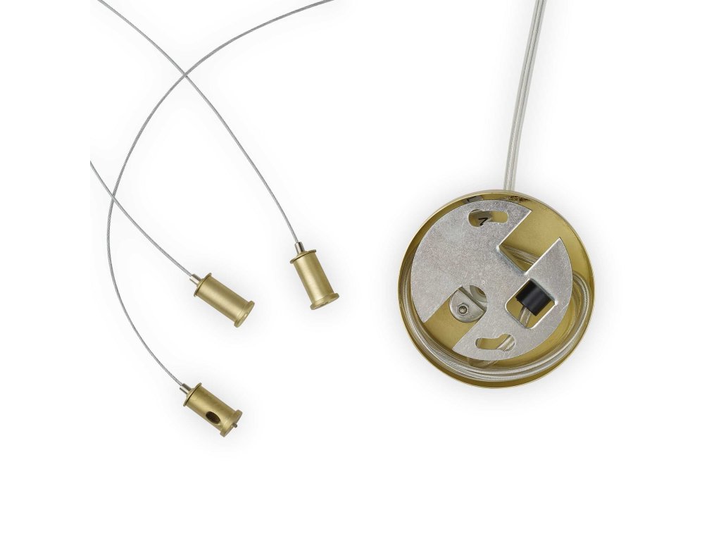 - tři pogumované přívodní kabely jsou upevněny přímo ke stropu a jejich výšku lze regulovat až do délky 249 cm