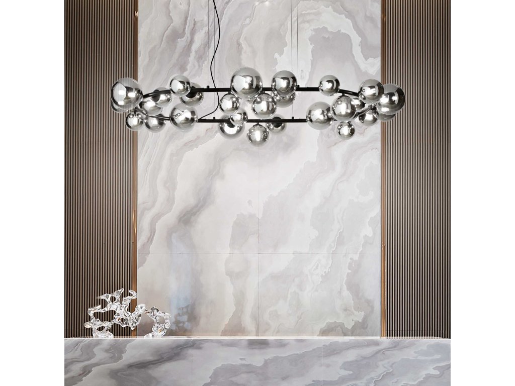 Závěsné svítidlo PERLAGE z kolekce designového osvětlení značky Ideal Lux v kulaté verzi ve variantě se 14 kulatými difuzory se skvěle hodí do moderně zařízených interiérů s...