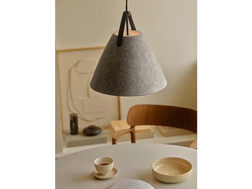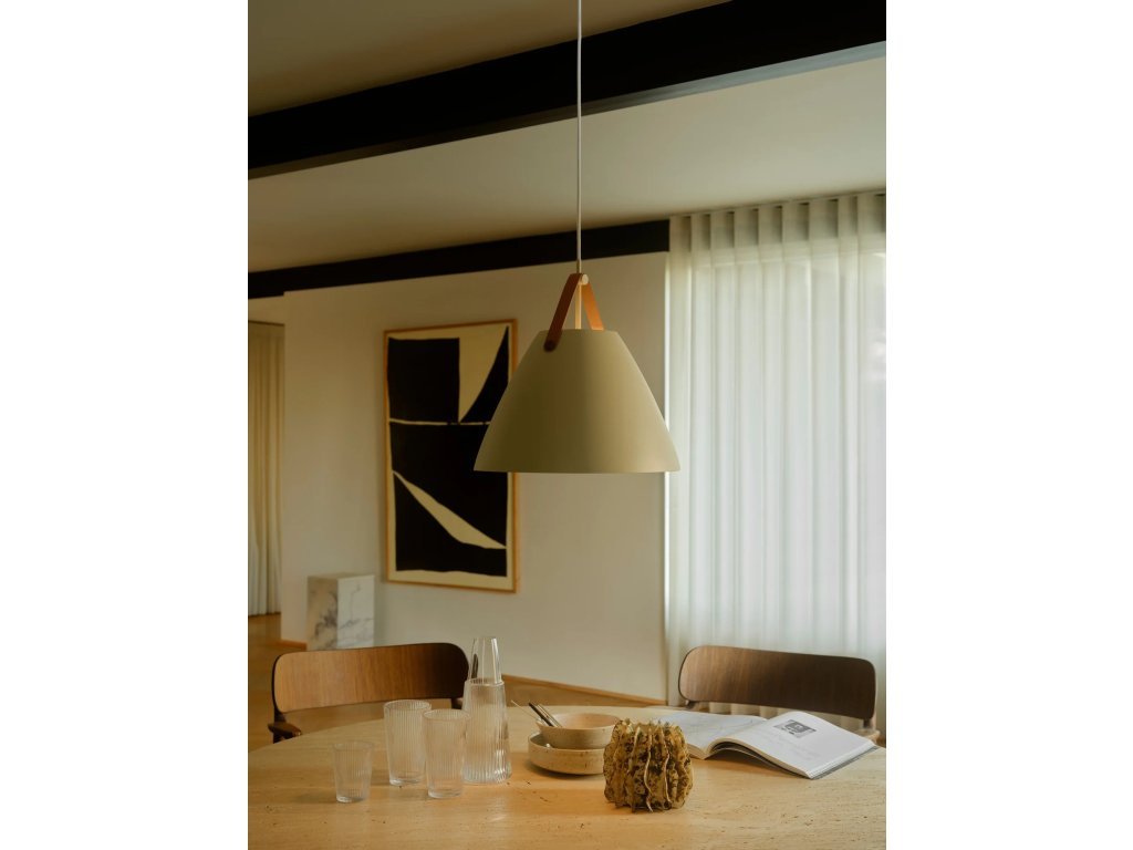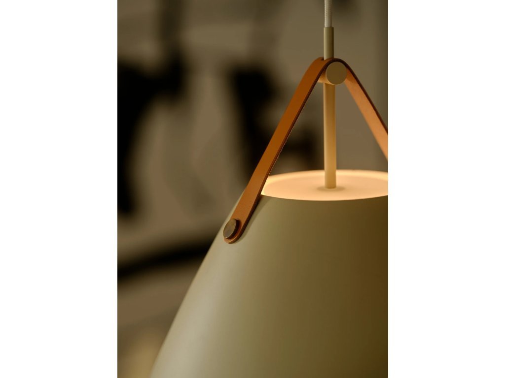 - úzký a elegantní kožený popruh dodává svítidlu hřejivý a syrový vzhled zároveň a vyvažuje klasický a industriální výraz