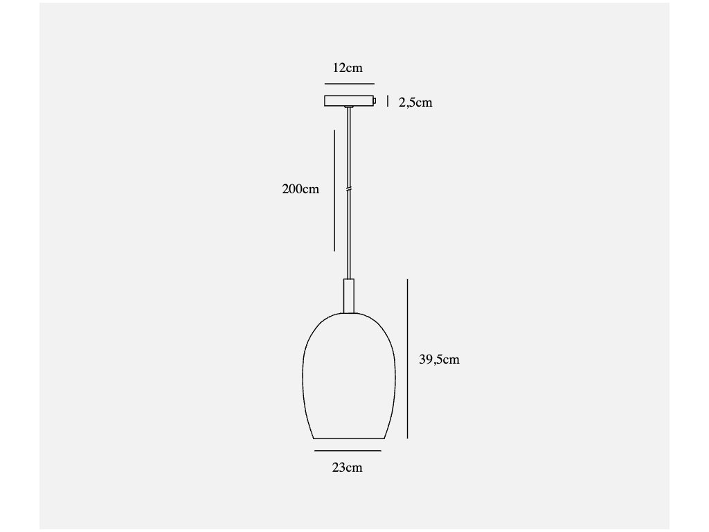 Moderní závěsné svítidlo s ručně foukaným skleněným stínidlem v kombinaci s kovem a charakteristickým krouceným textilním kabelem dodává dodává svítidlu zvláštní kouzlo.